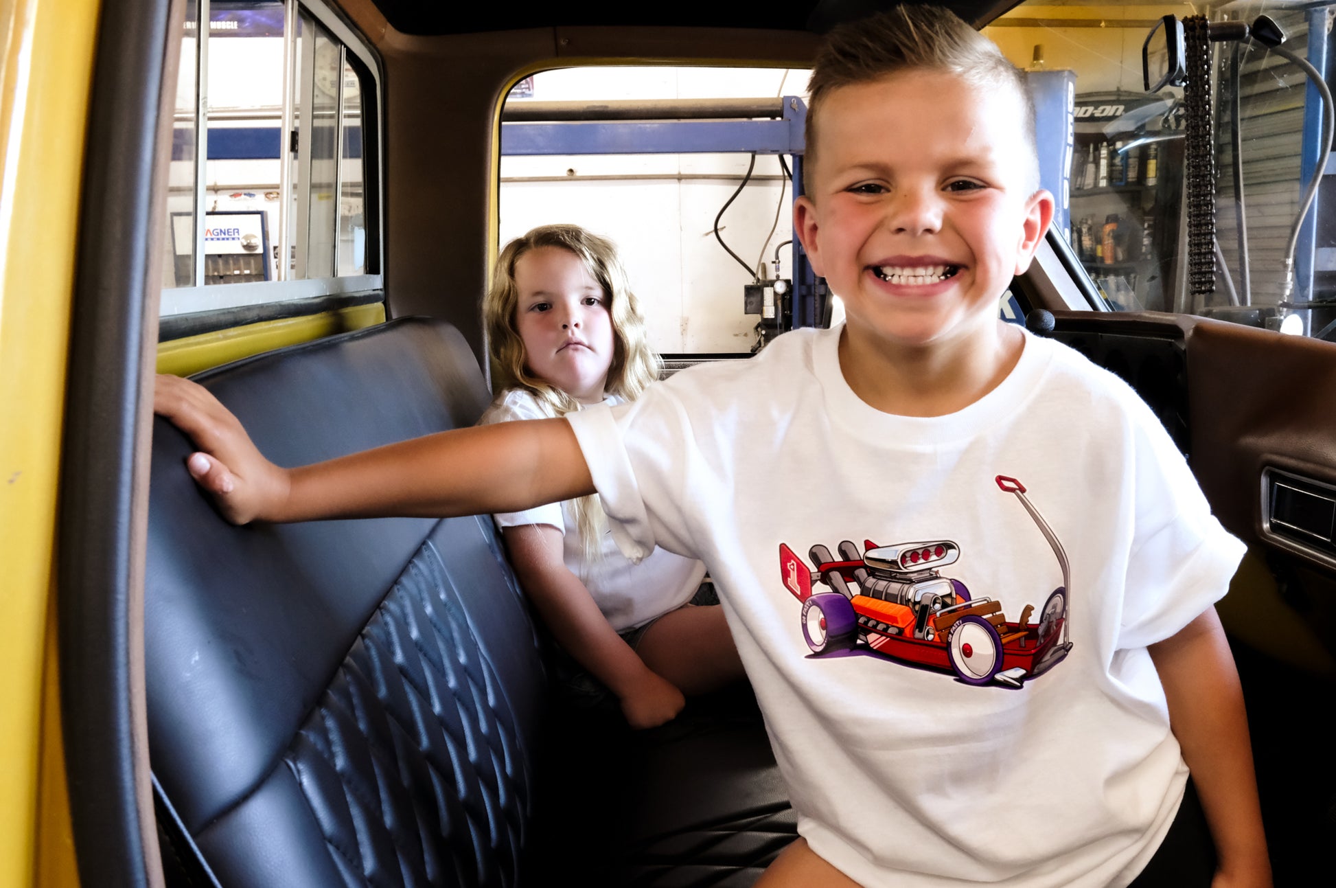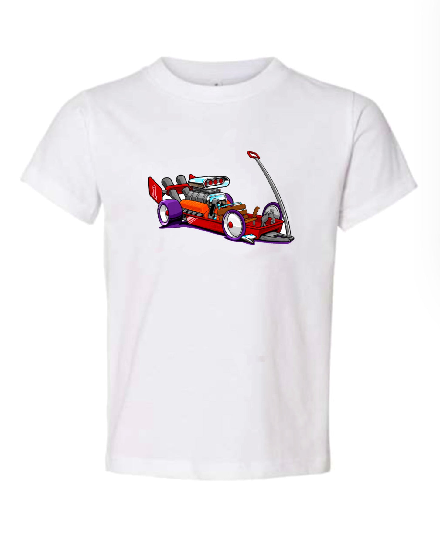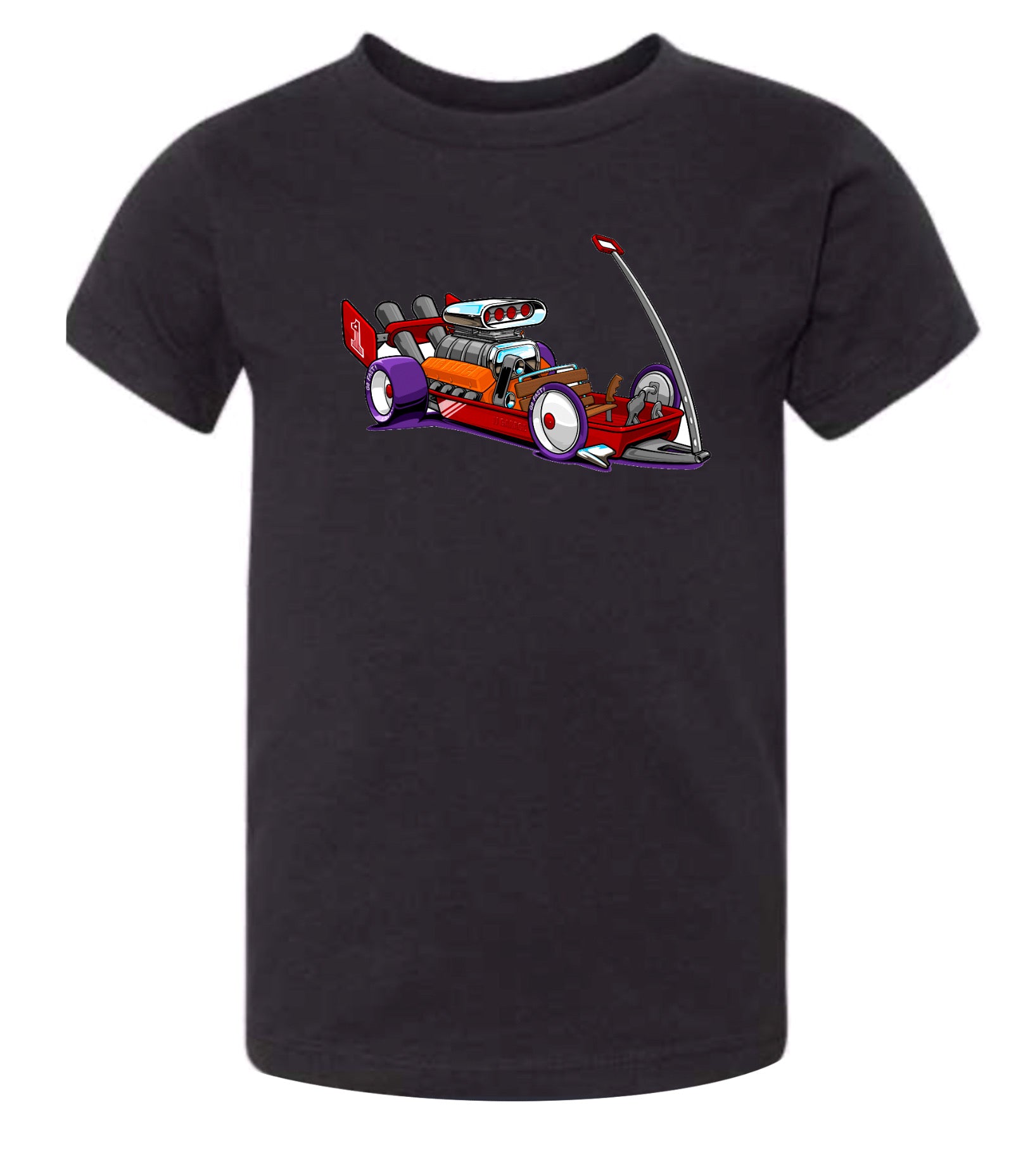 A family favorite design of the classic red wagon, re-imagined with a big block sitting in the rear. A fan favorite! Giving you the style your lil rodder is looking for!